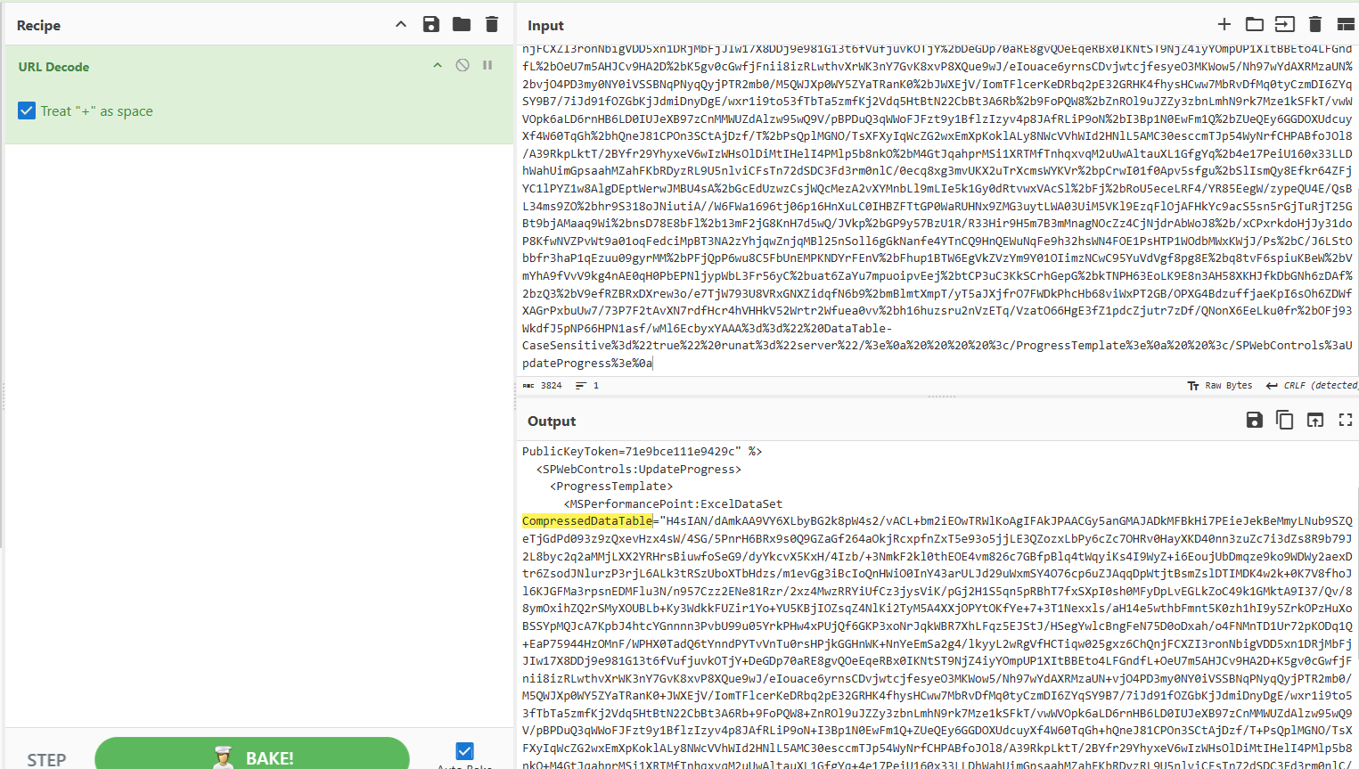CompressedDataTableparameter contained heavily obfuscated data, layered as GZIP → Base64 → Base64, clearly designed to hide the real payload.