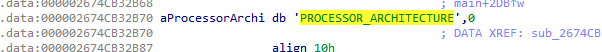 The decrypted value resolves to the PROCESS_ARCHITECTURE string, which is a standard Windows environment variable. This variable specifies the system’s processor architecture, such as x86, AMD64, IA64, or ARM64.